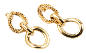 Brinco Ouro 18k Duplo Argola com corrente portuguesa e Bolinha – 14cm