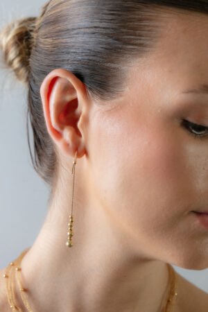 Brinco Ouro 18k Longo com Esferas Foscas e Polidas