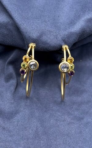 Brinco Ouro 18k Argola Oval Dupla com Gemas Naturais Coloridas
