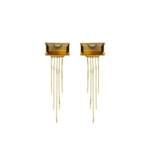 Brinco Ouro 18k Retângulo de Quartzo fumê e fios