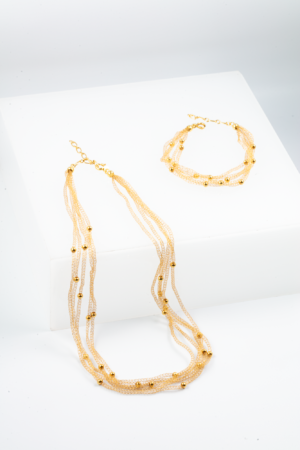 Colar ouro 18k Crochê com Esferas – 40cm