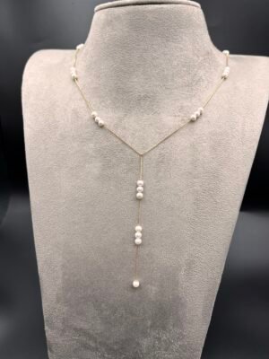 Colar Ouro 18k Gravatinha com Pérolas Naturais redondas – 45cm