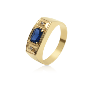 Anel Ouro 18k Formatura com Safira e 3 pontos de Diamantes