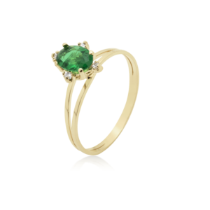 Anel Ouro 18k Formatura com Esmeralda e 12 pontos de Diamantes