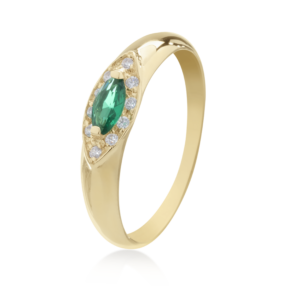 Anel Ouro 18k Formatura com Esmeralda e 8 pontos de Diamantes