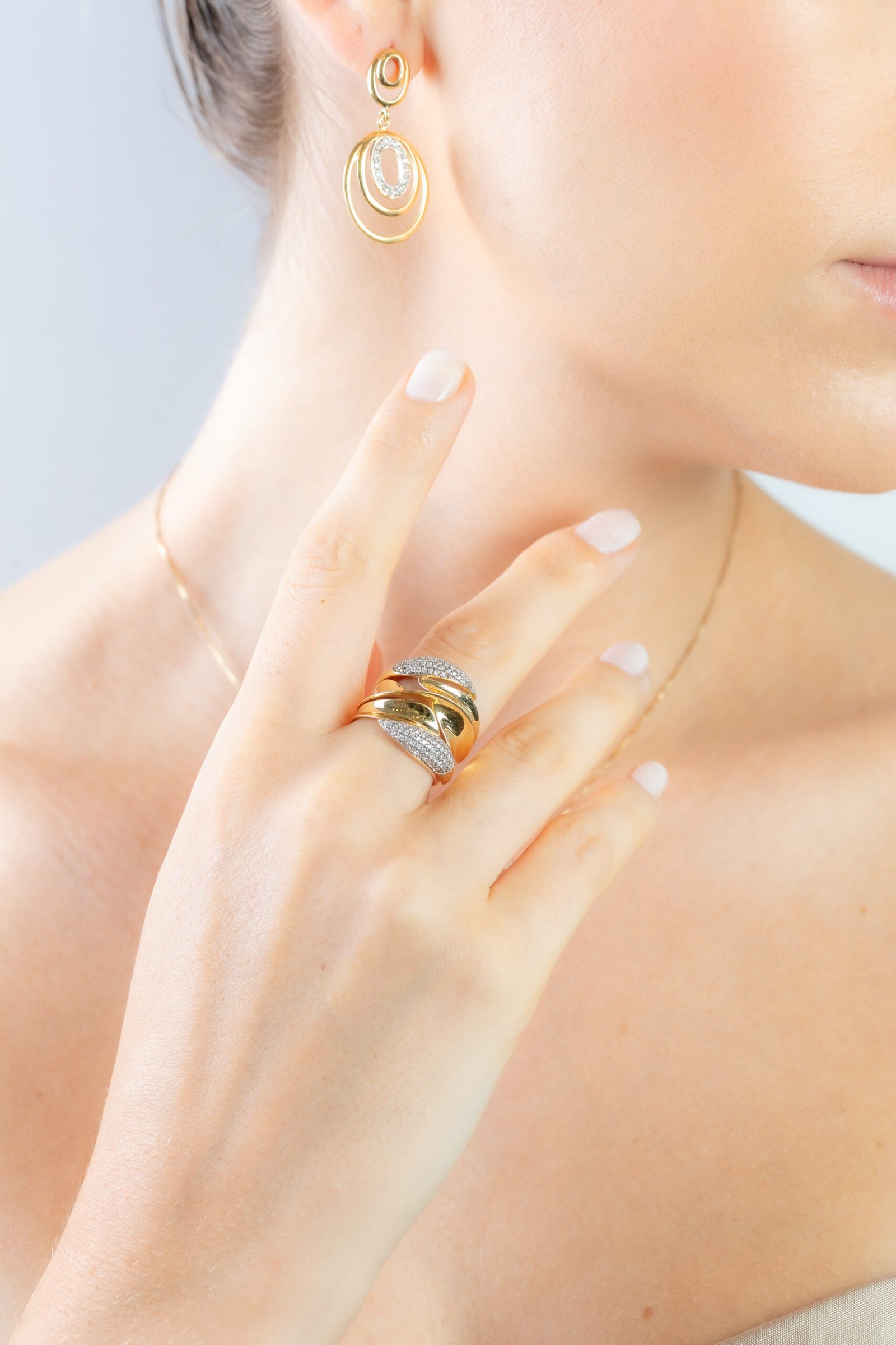 Anel Ouro 18k Cravejado com 56 pontos de Diamantes