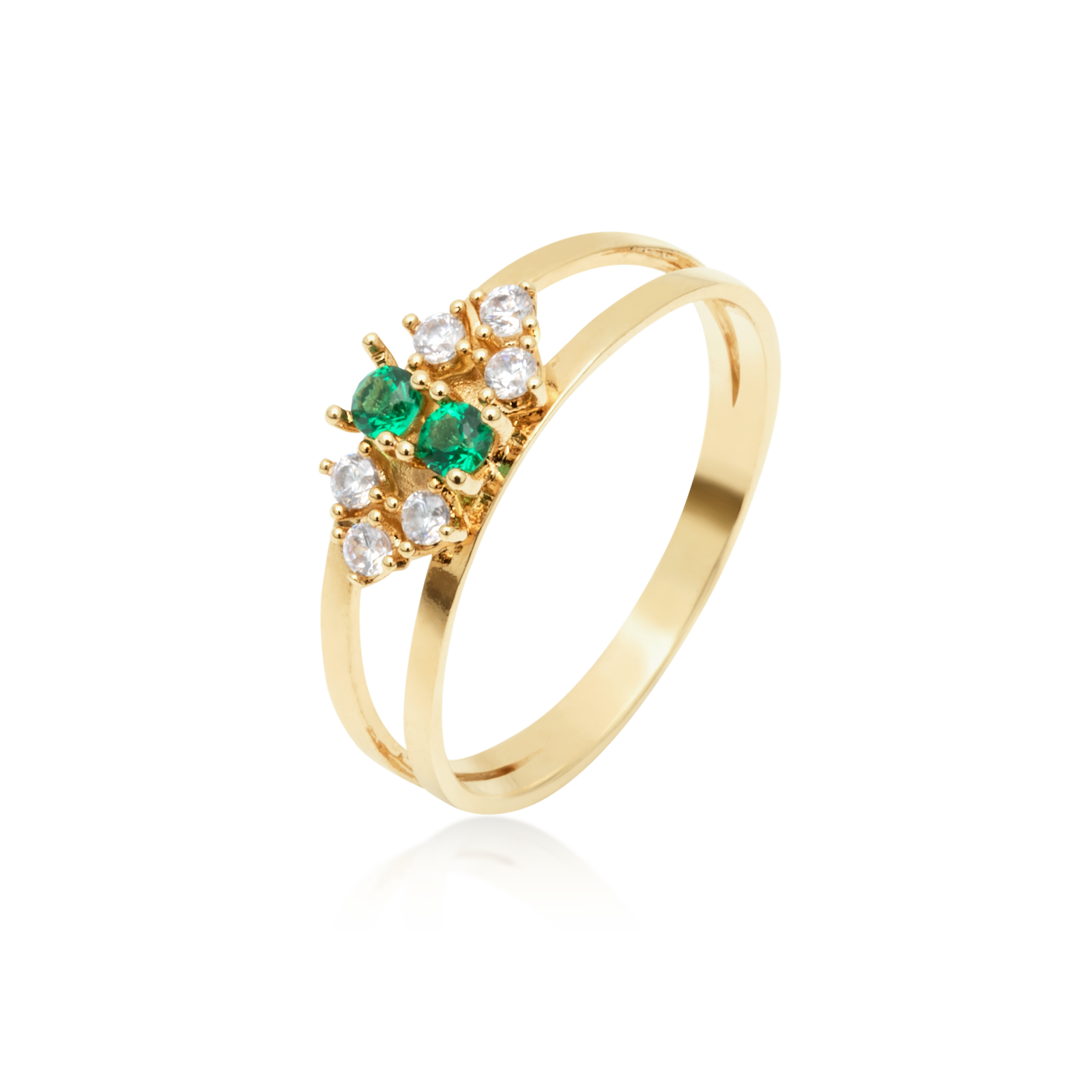 Anel Ouro 18k Formatura com Esmeralda e 12 pontos de Diamantes