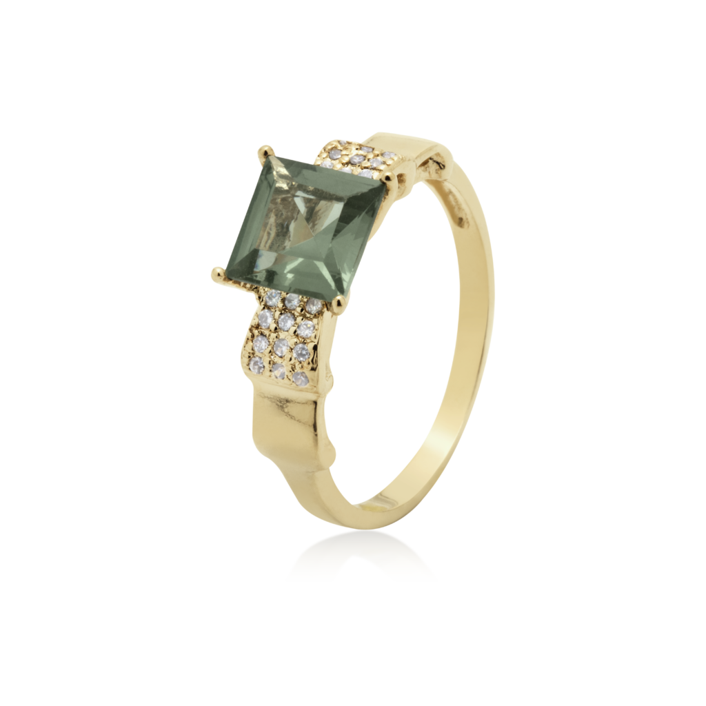 Anel Ouro 18k Formatura com Esmeralda e 12 pontos de Diamantes