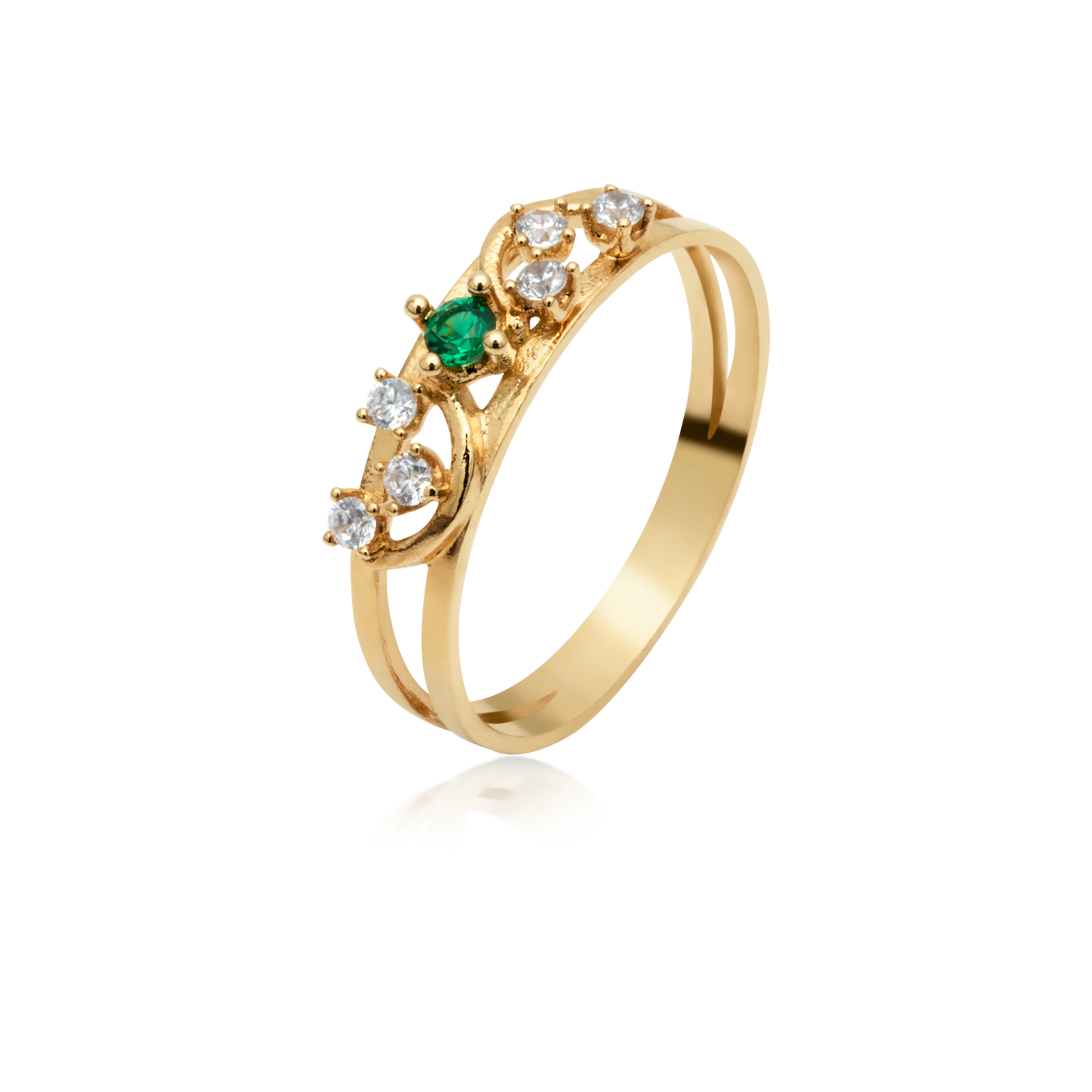 Anel Ouro 18k Formatura com Esmeralda e 12 pontos de Diamantes