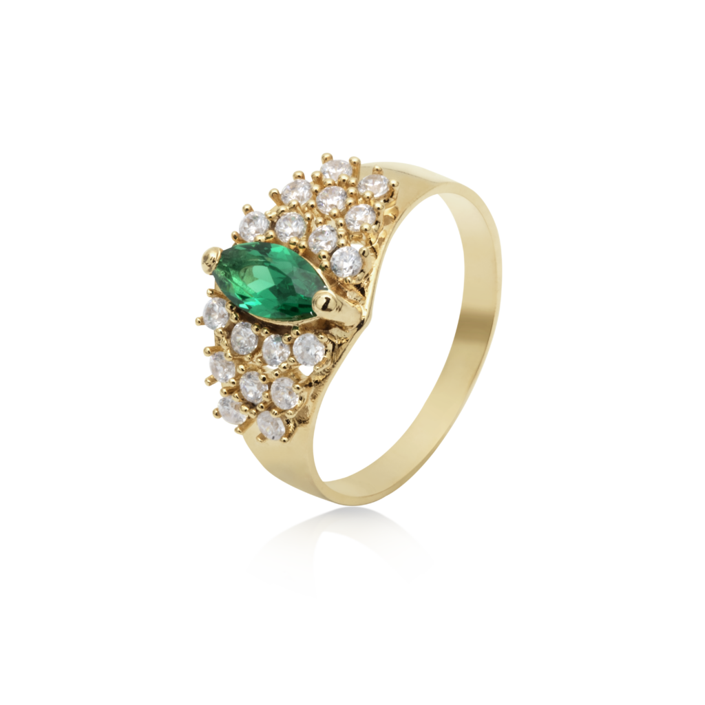 Anel Ouro 18k Formatura com Esmeralda e 36 pontos de Diamantes
