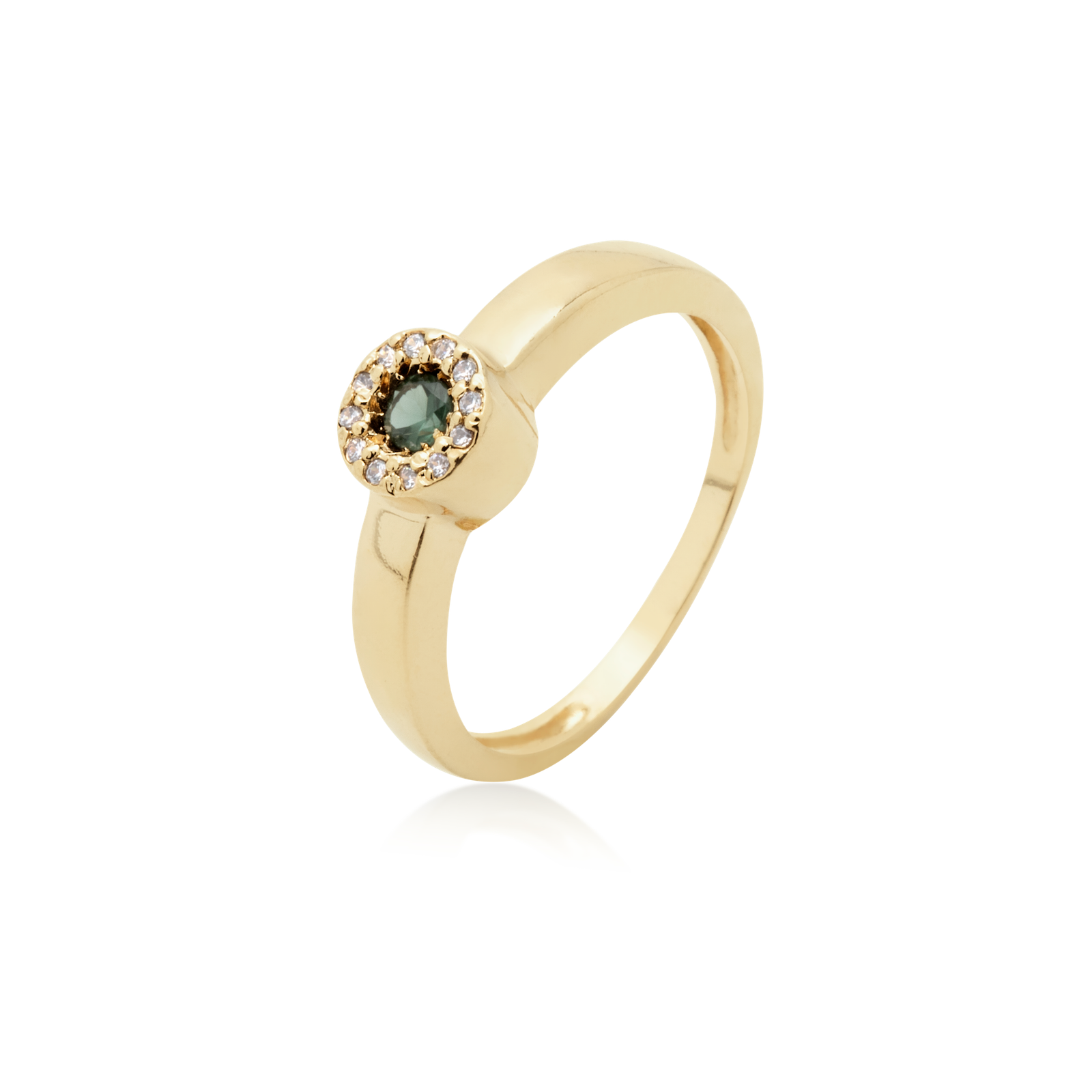 Anel Ouro 18k Formatura com Esmeralda e 6 pontos de Diamantes