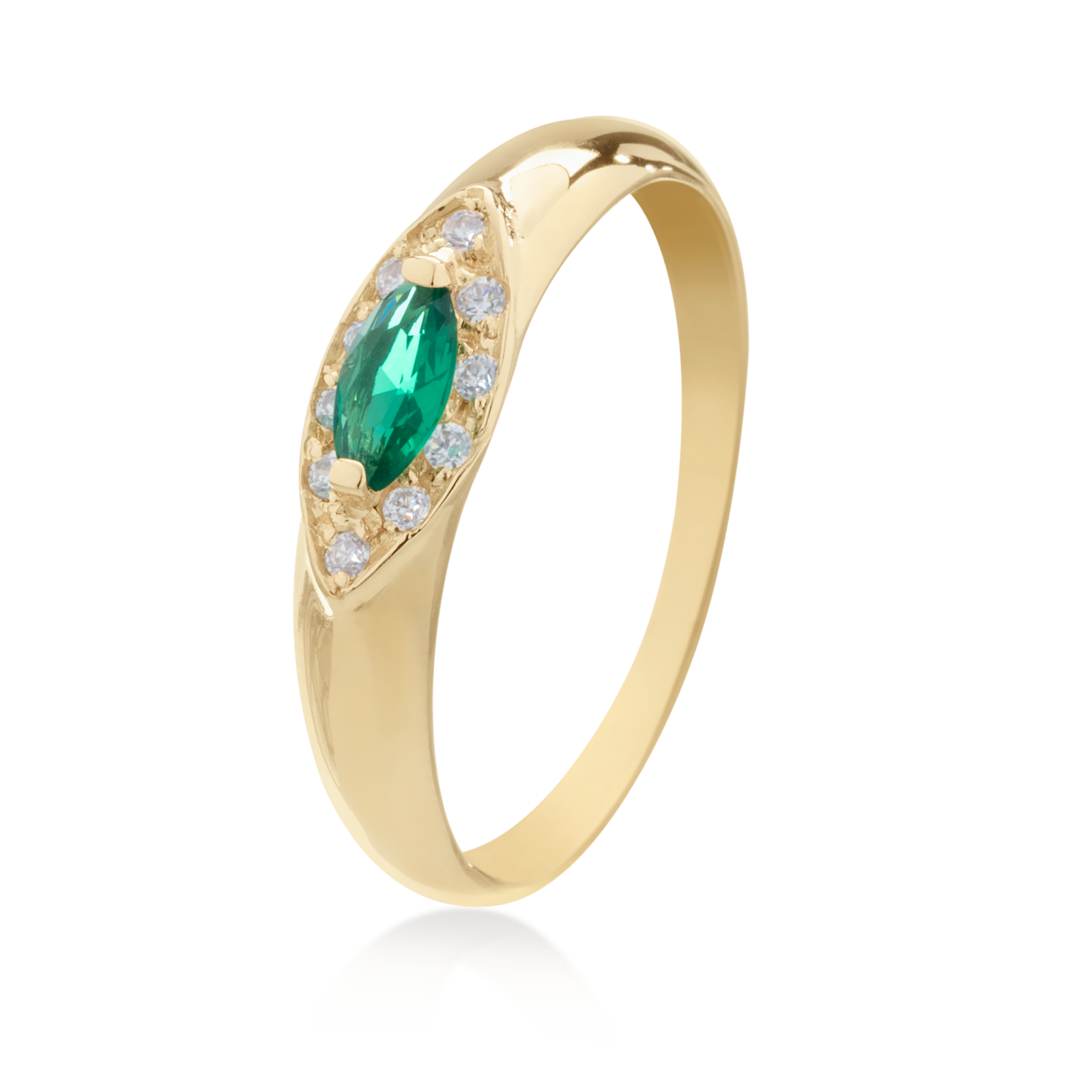 Anel Ouro 18k Formatura com Esmeralda e 8 pontos de Diamantes