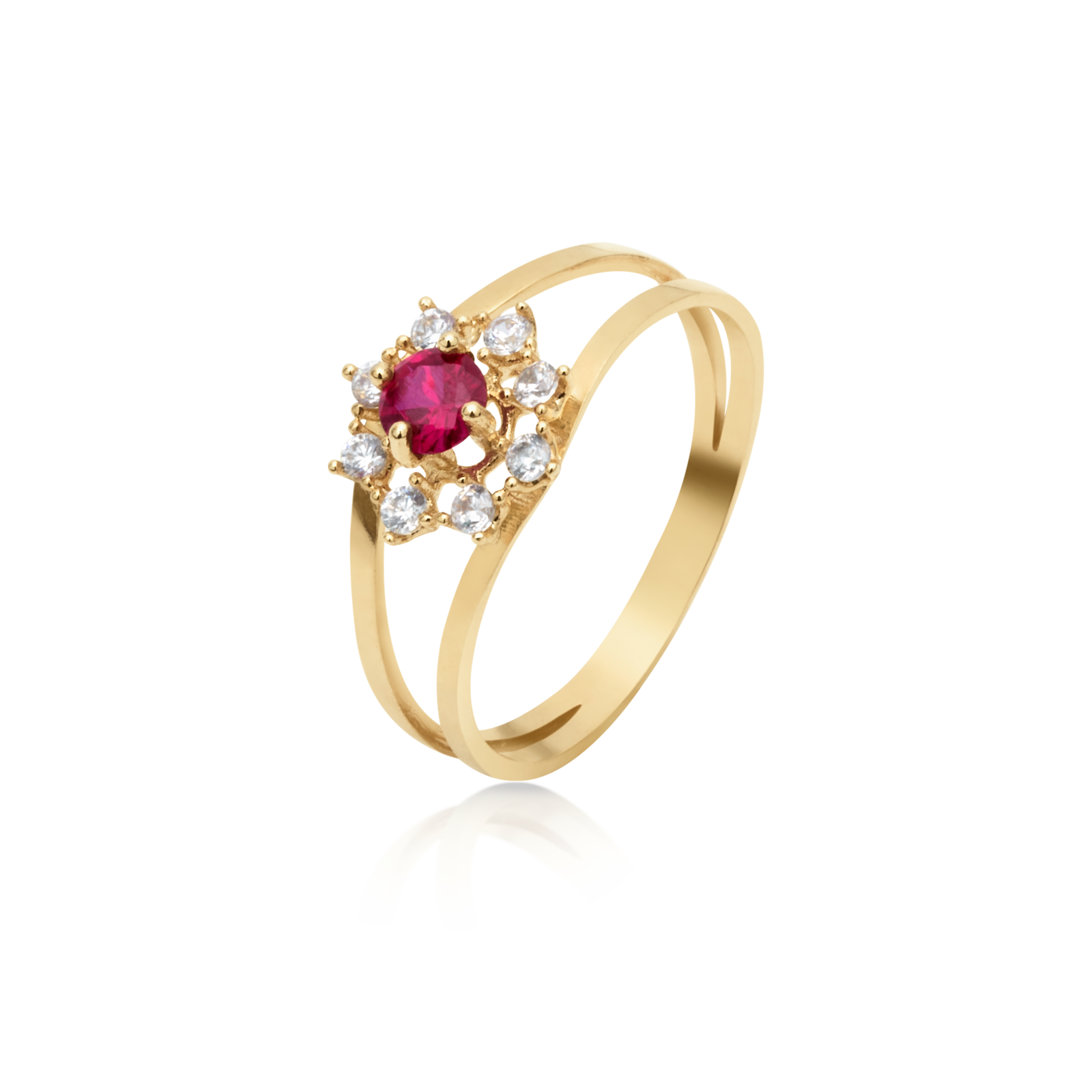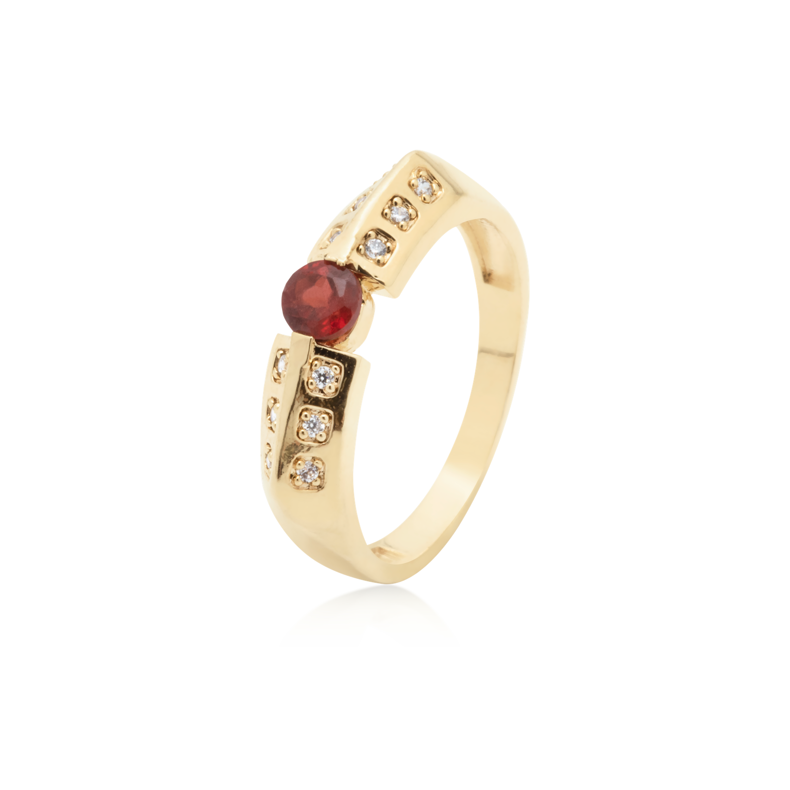 Anel Ouro 18k Formatura com Rubi e 16 pontos de Diamantes