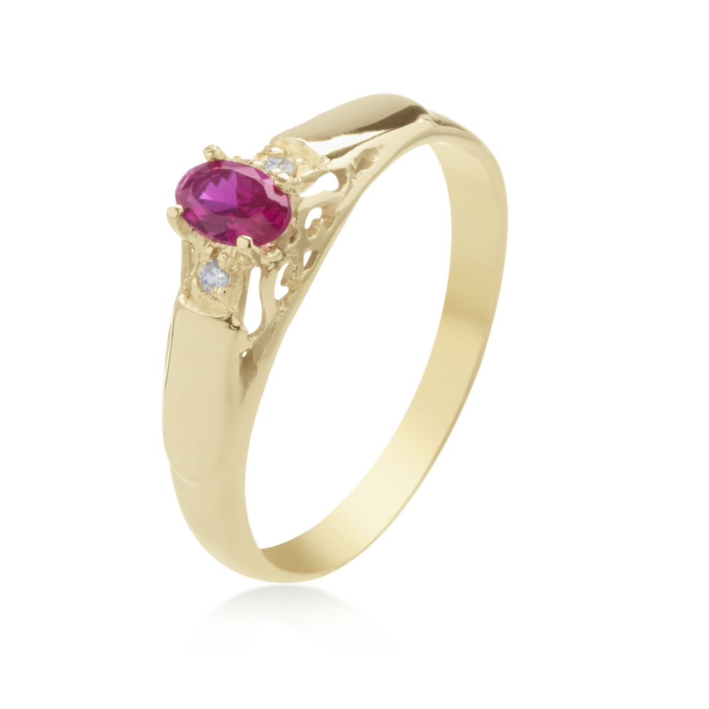 Anel Ouro 18k Formatura com Rubi e 2.6 pontos de Diamantes