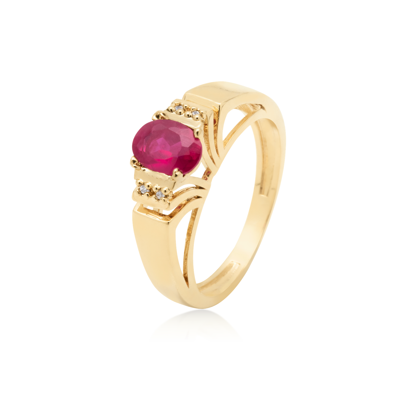 Anel Ouro 18k Formatura com Rubi e 2 pontos de Diamantes