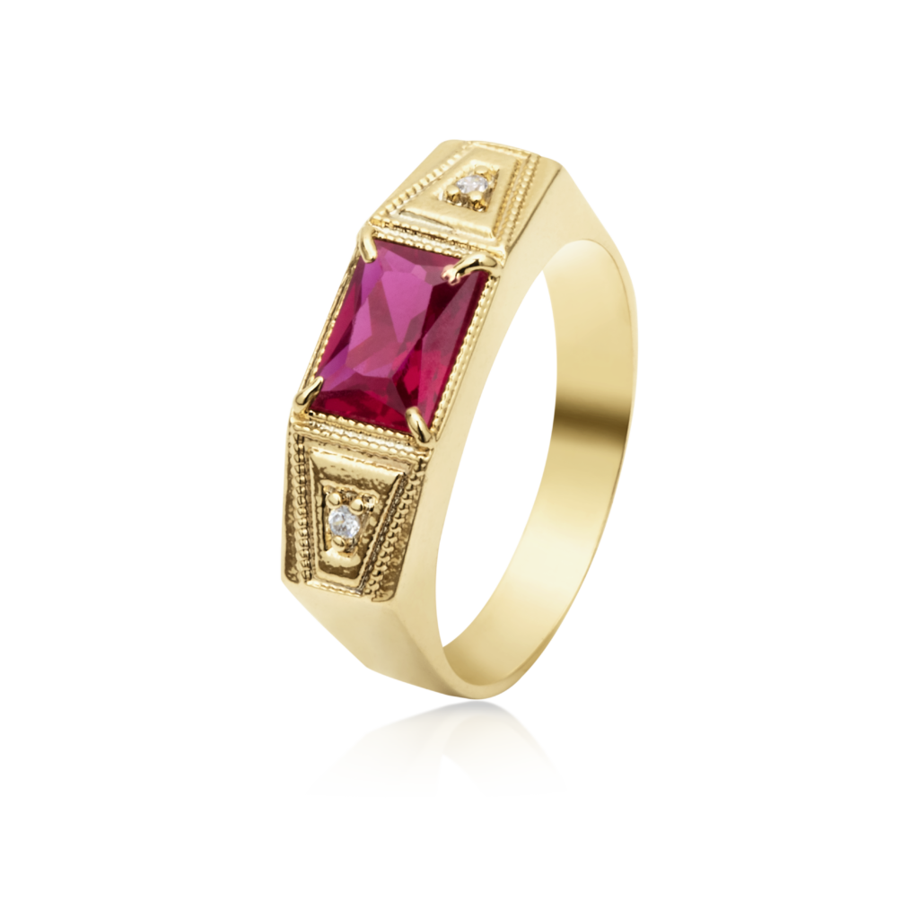 Anel Ouro 18k Formatura com Rubi e 2 pontos de Diamantes
