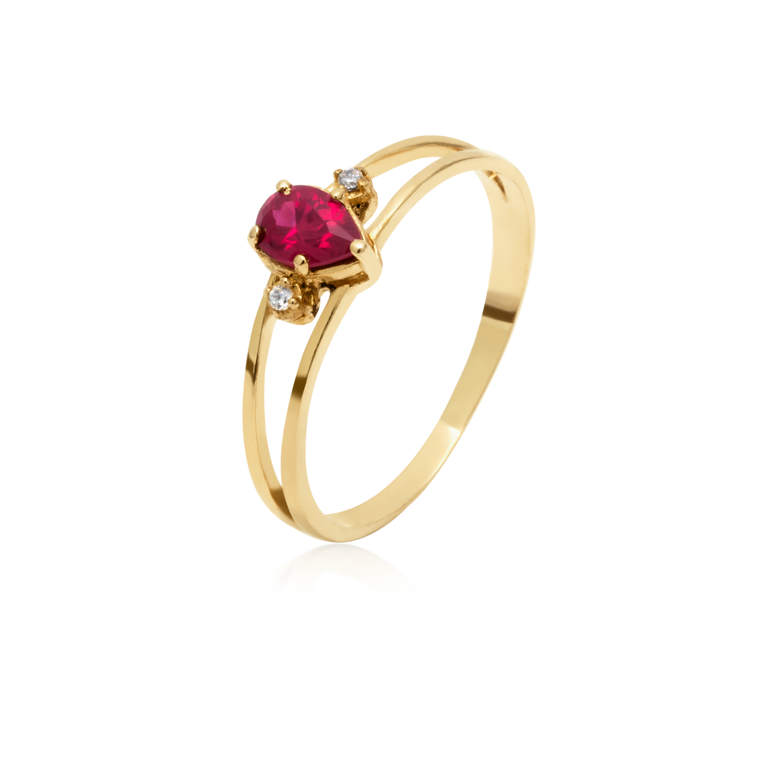 Anel Ouro 18k Formatura com Rubi e 2 pontos de Diamantes