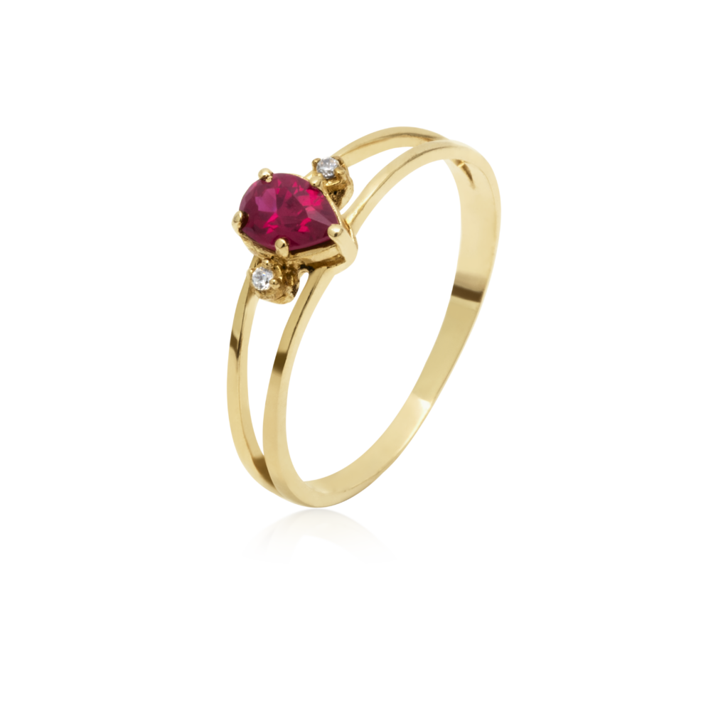 Anel Ouro 18k Formatura com Rubi e 2 pontos de Diamantes