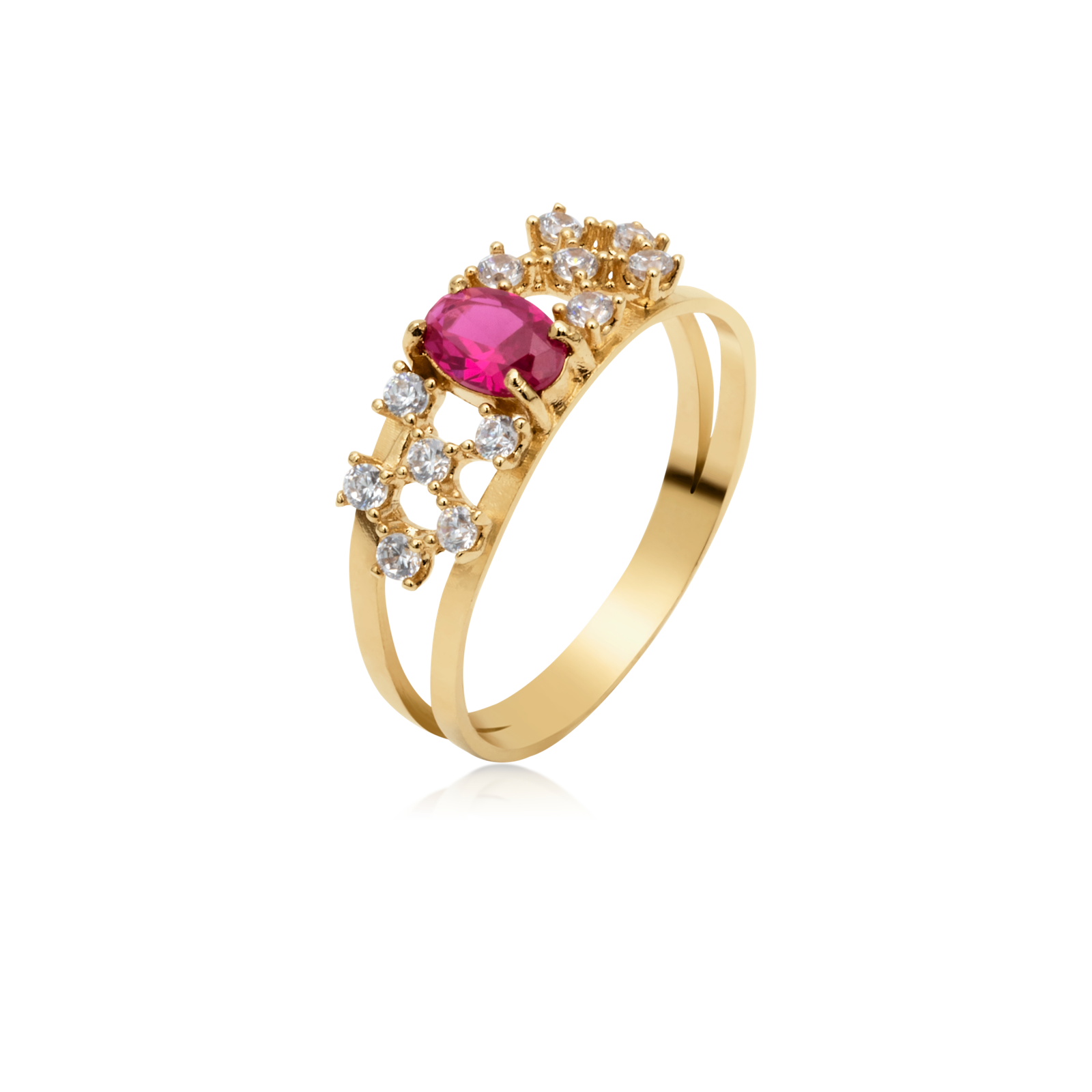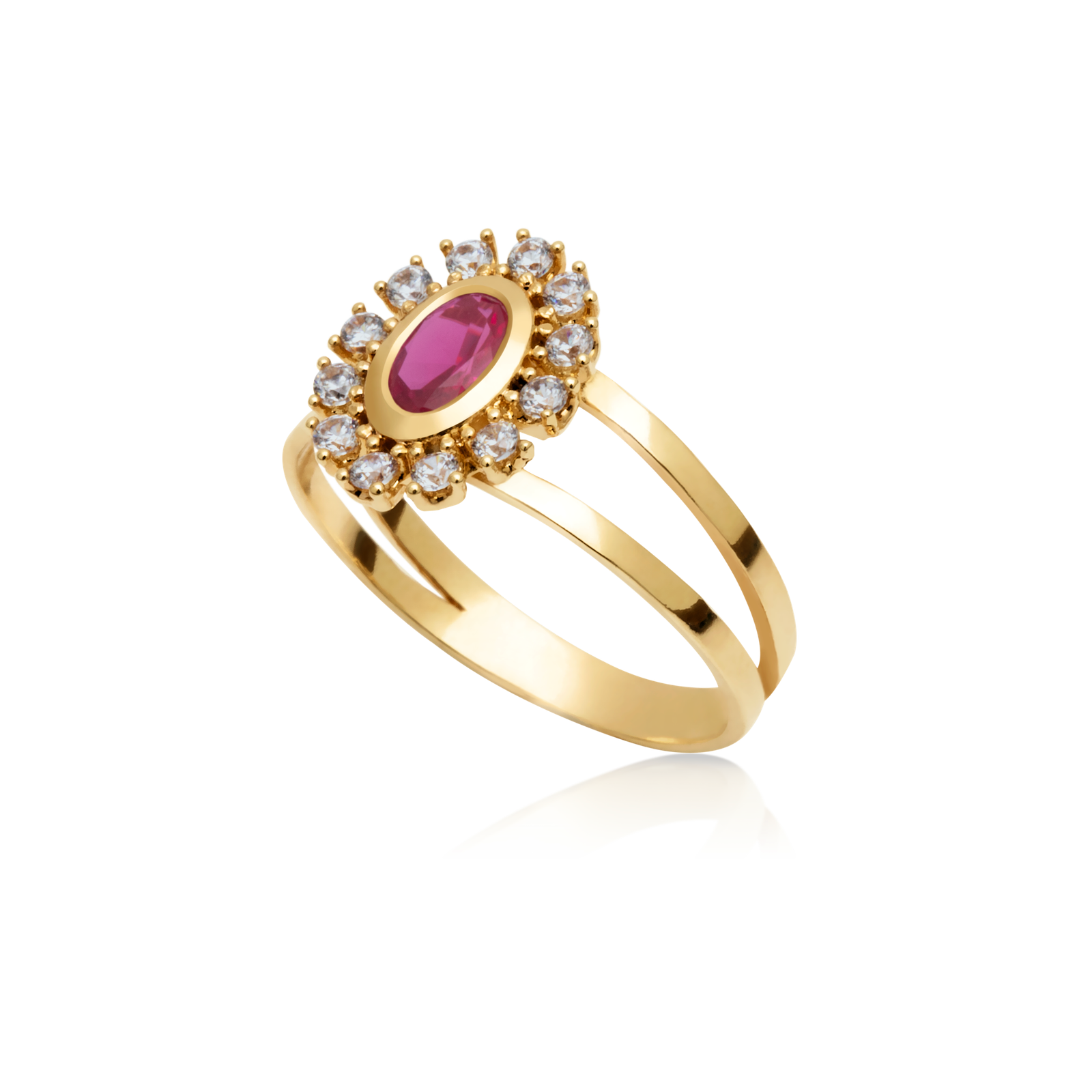 Anel Ouro 18k Formatura com Rubi e 24 pontos de Diamantes