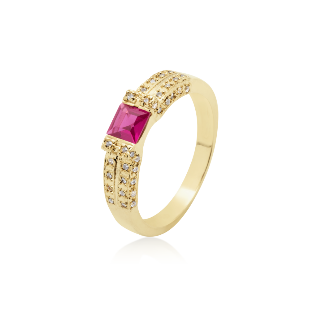 Anel Ouro 18k Formatura com Rubi e 24 pontos de Diamantes