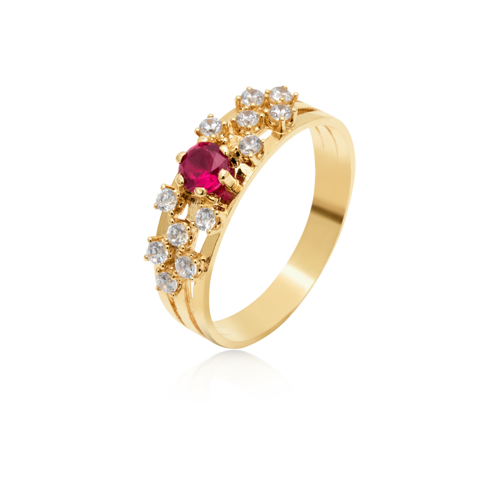 Anel Ouro 18k Formatura com Rubi e 24 pontos de Diamantes