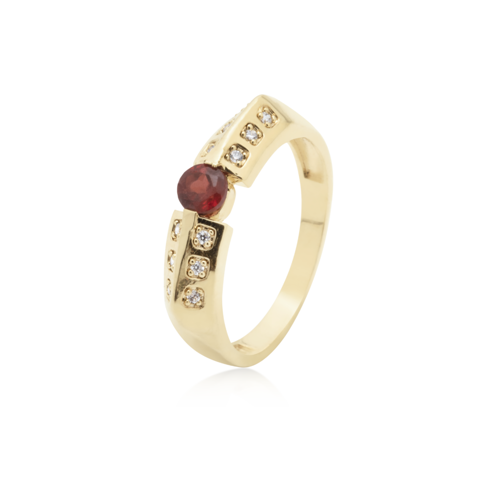 Anel Ouro 18k Formatura com Rubi e 6 pontos de Diamantes
