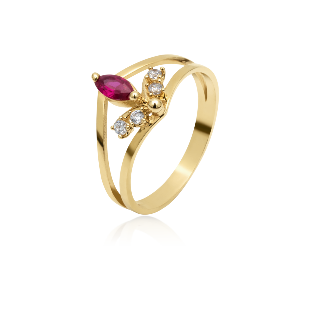 Anel Ouro 18k Formatura com Rubi e 8 pontos de Diamantes