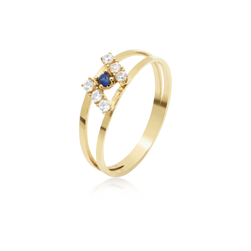 Anel Ouro 18k Formatura com Safira e 12 pontos de Diamantes