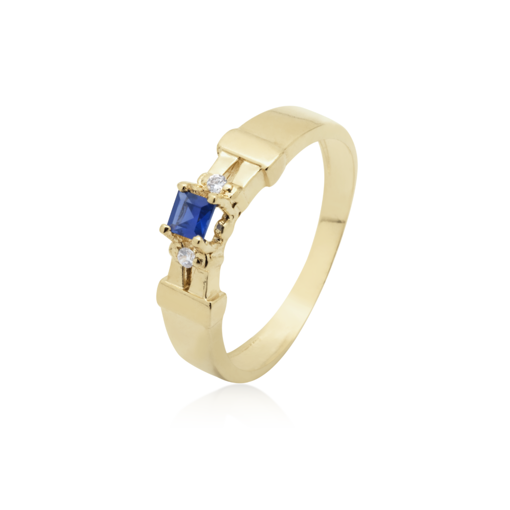Anel Ouro 18k Formatura com Safira e 2.6 pontos de Diamantes