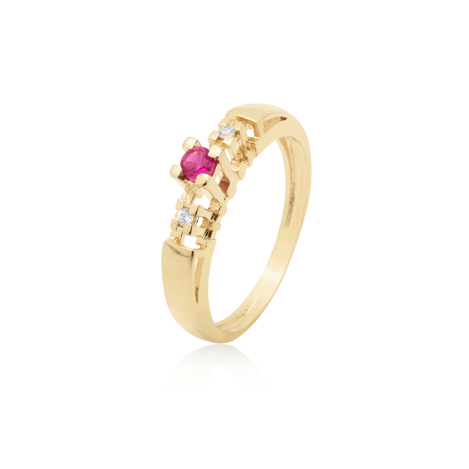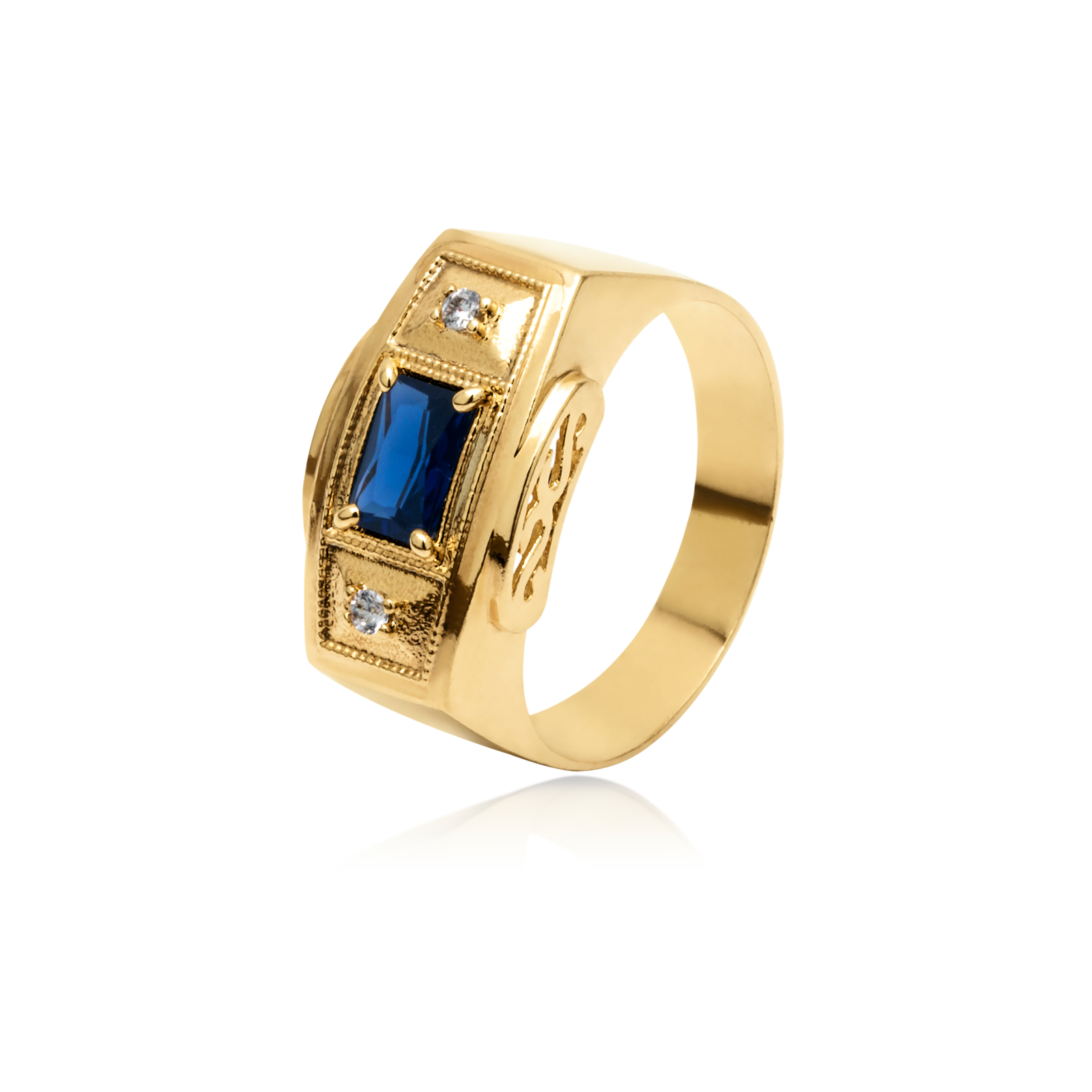 Anel Ouro 18k Formatura com Safira e 3 pontos de Diamantes