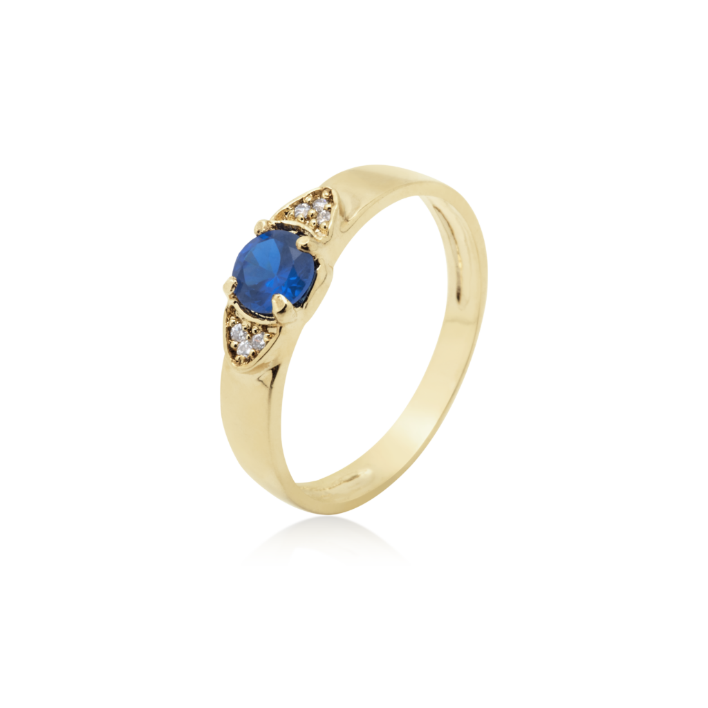 Anel Ouro 18k Formatura com Safira e 3 pontos de Diamantes