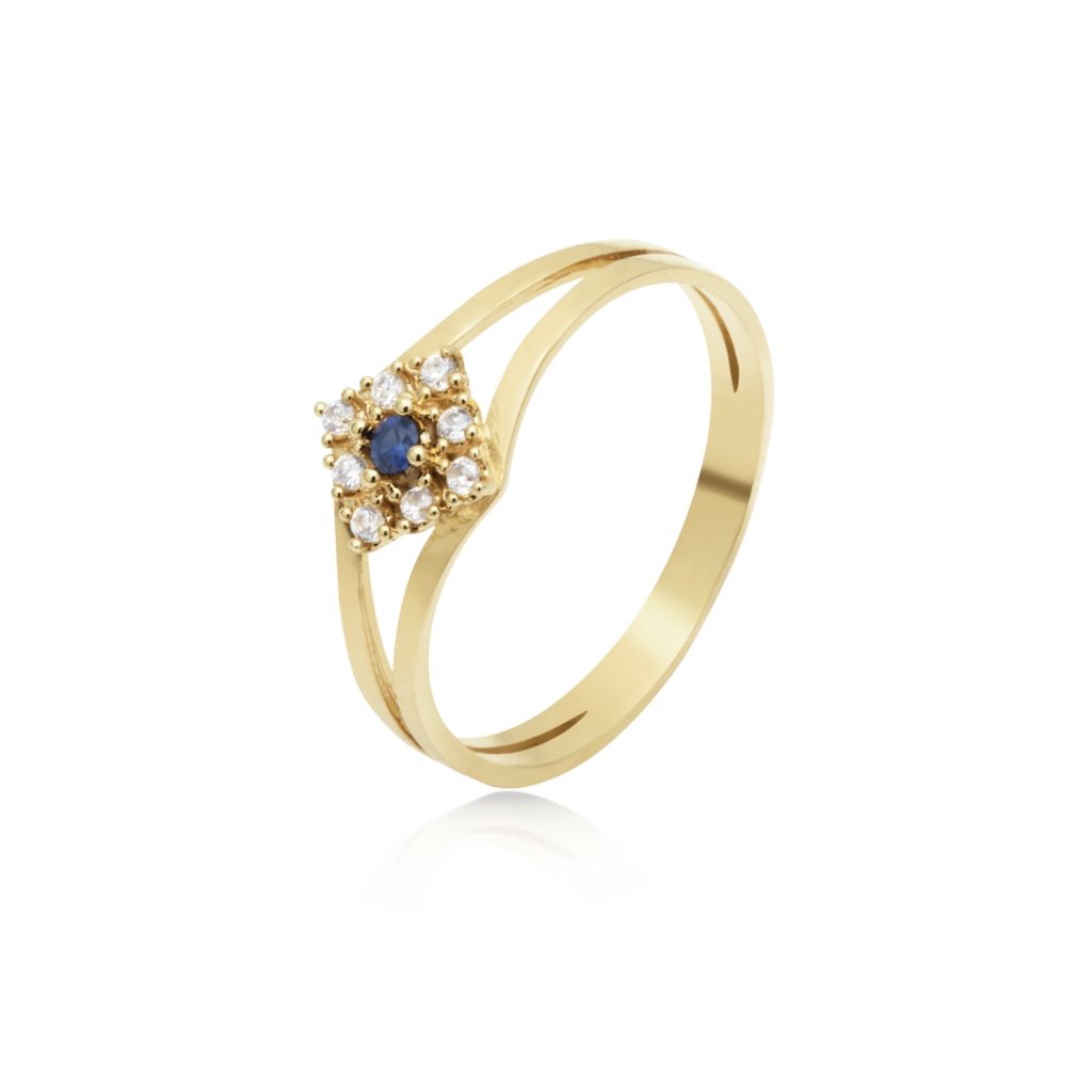 Anel Ouro 18k Formatura com Safira e 6.4 pontos de Diamantes