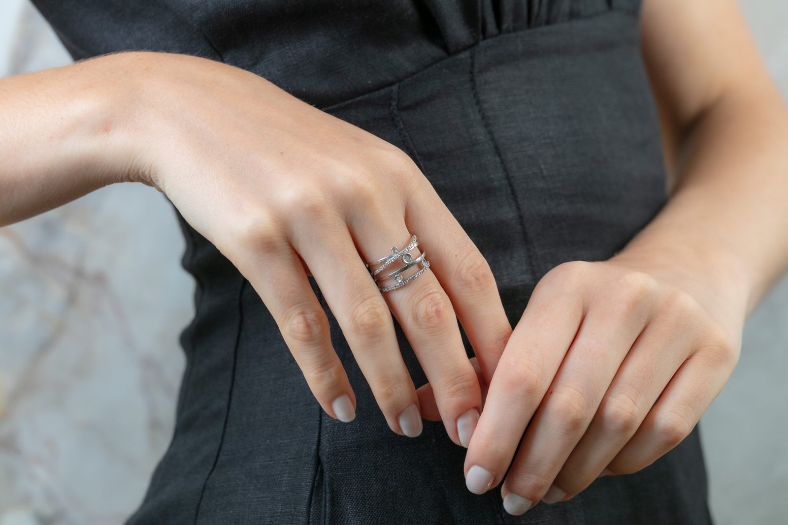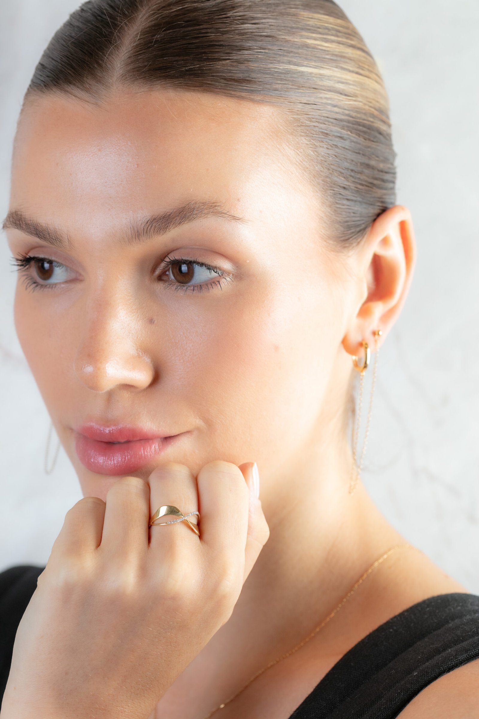 Anel Ouro 18k Infinito com 13 pontos de Diamantes