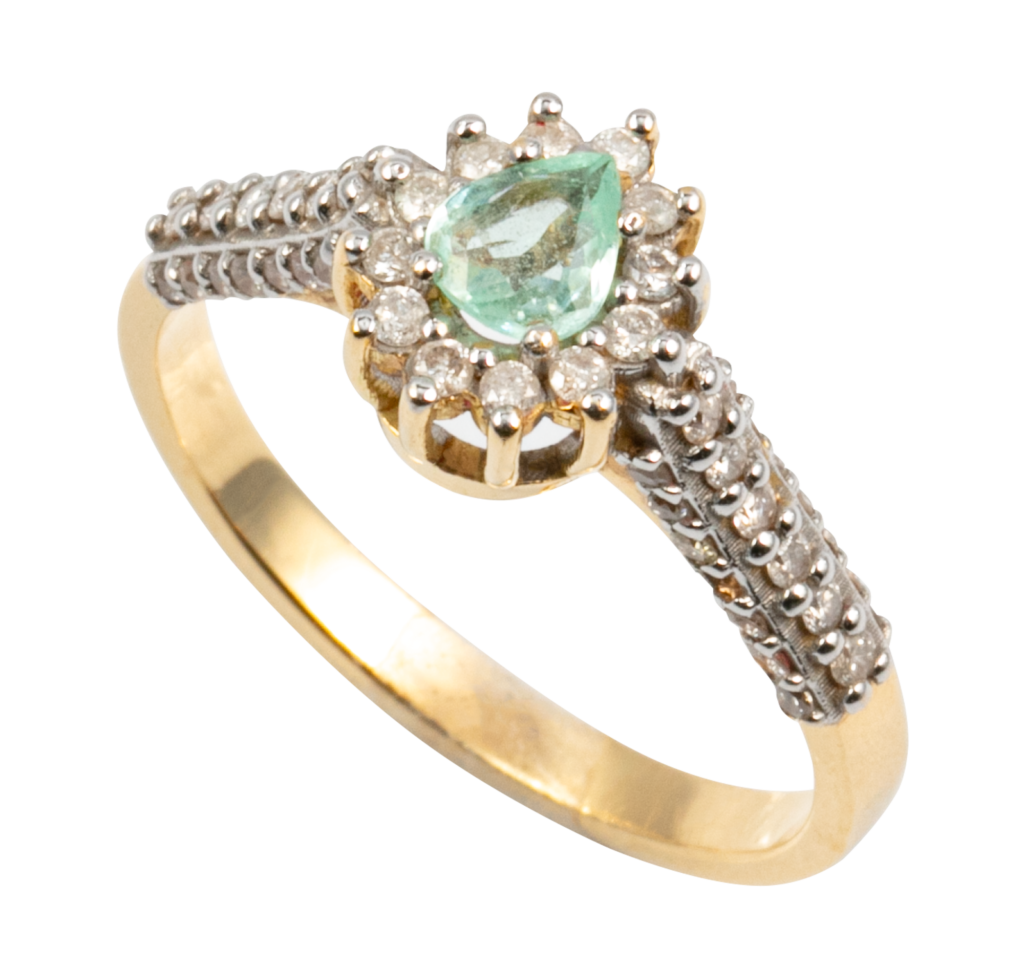 Anel Ouro 18k com Gema Natural Turmalina Paraíba lapidação Gota e aro cravejado com 40 pontos de Diamantes
