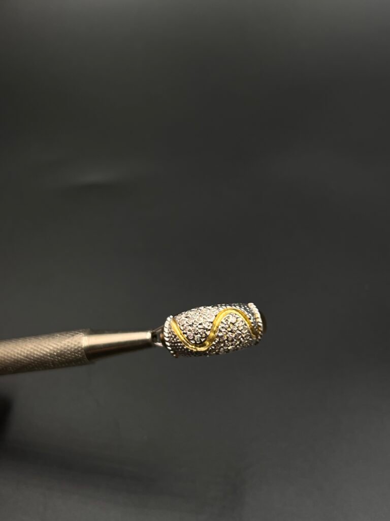 Anel Ouro Amarelo 18K e ródio branco com 20 pontos de Diamantes