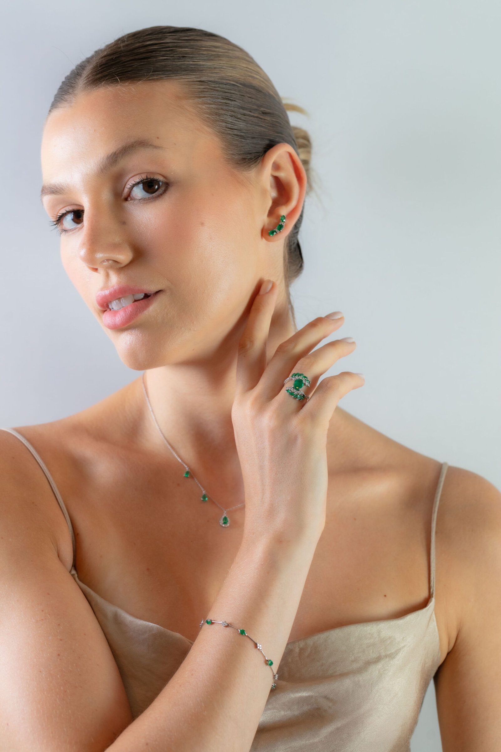 - Gema Central: Esmeralda Oval com aproximadamente 8/6mm