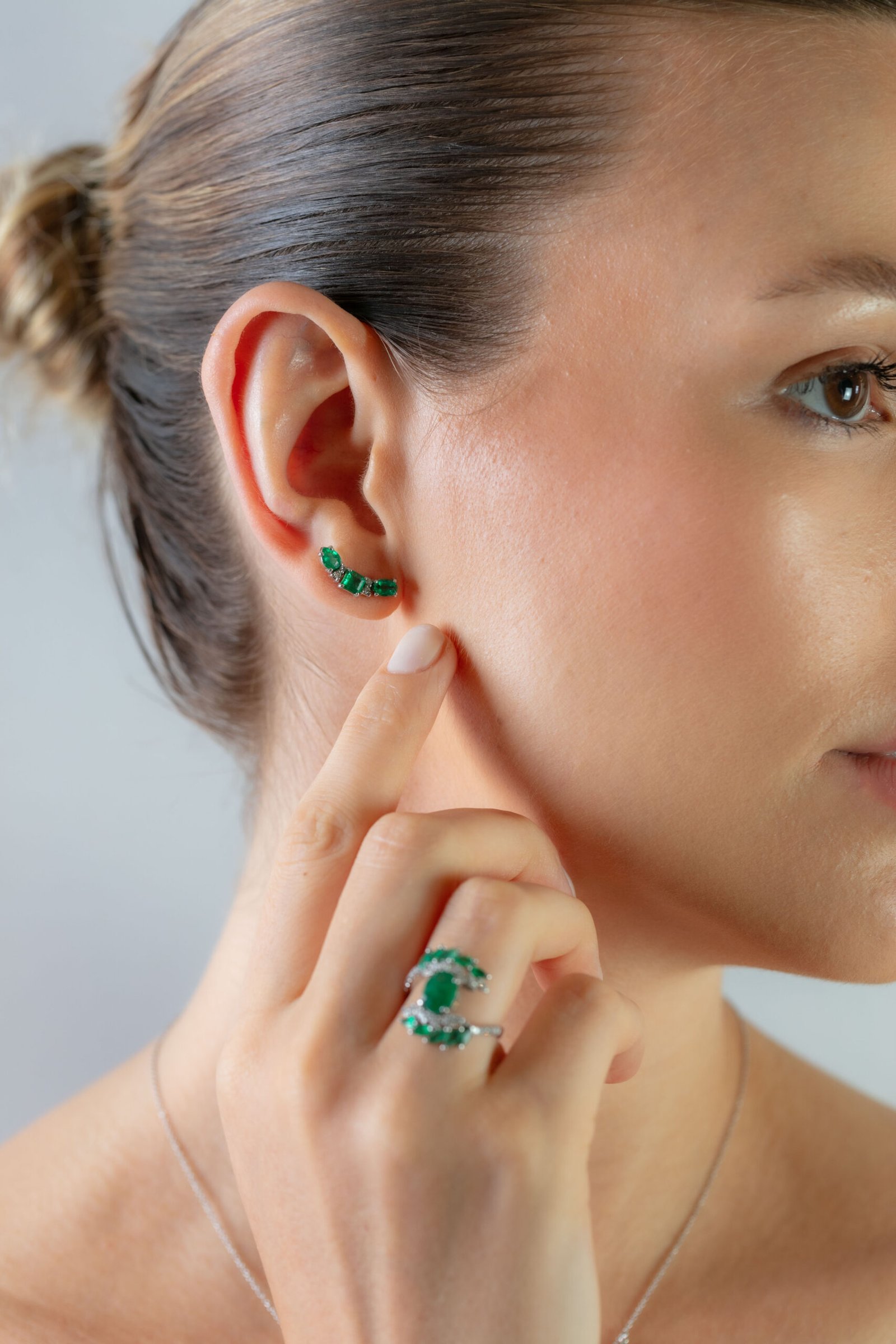 Anel Ouro Branco com Esmeraldas Naturais e 43.5 pontos de Diamantes