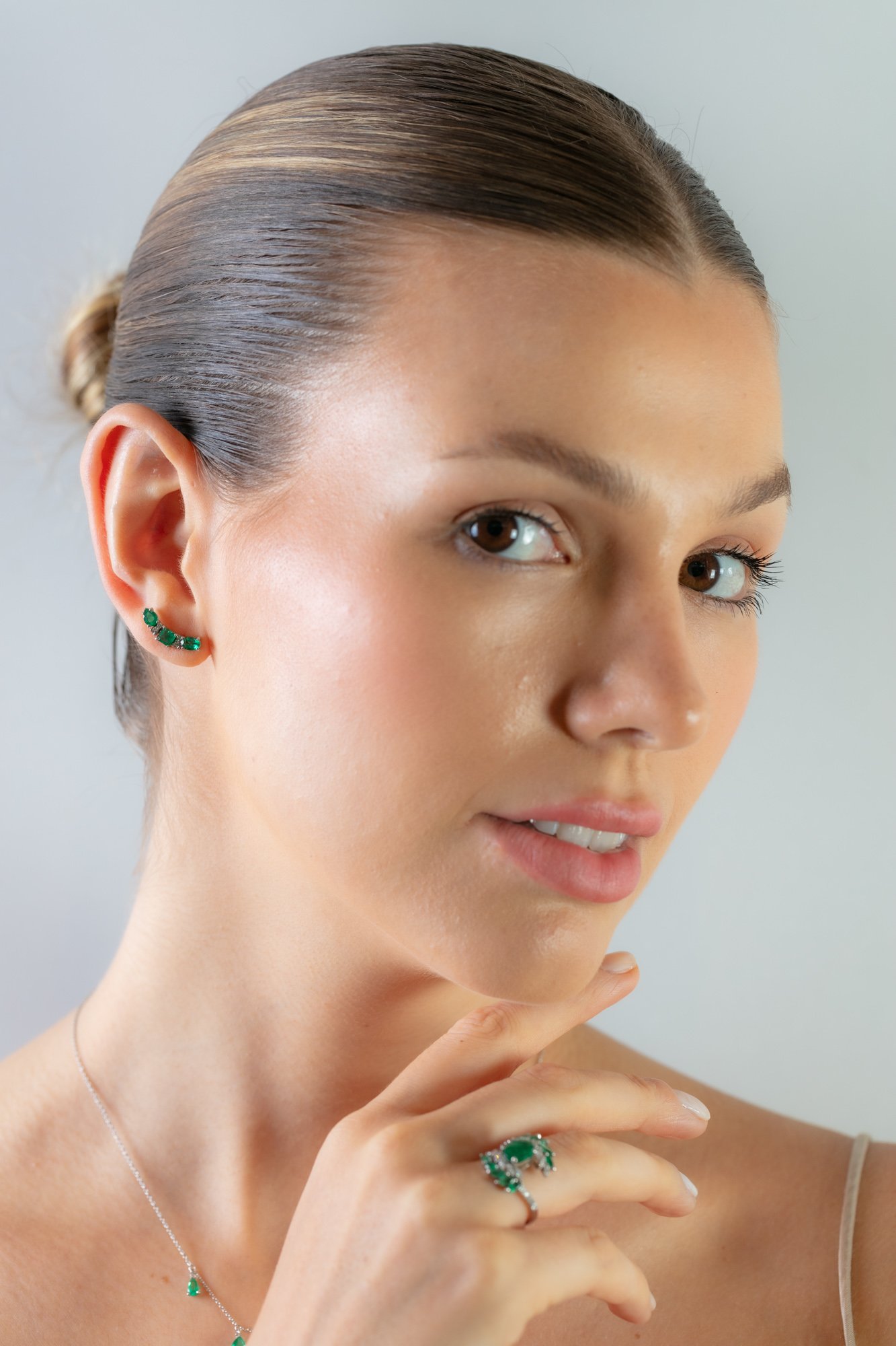 Anel Ouro Branco 18k com Esmeraldas e Diamantes
