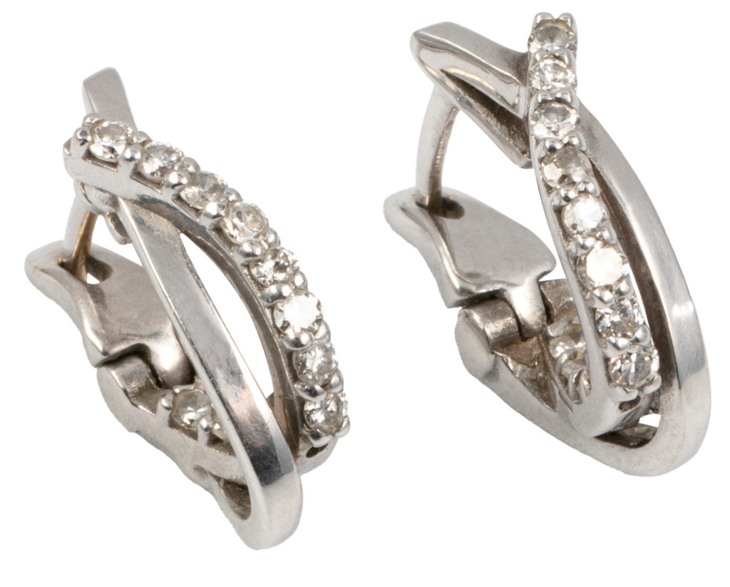 Brinco Ouro Branco 18k Argola Oval entrelaçada com 36 pontos de Diamantes