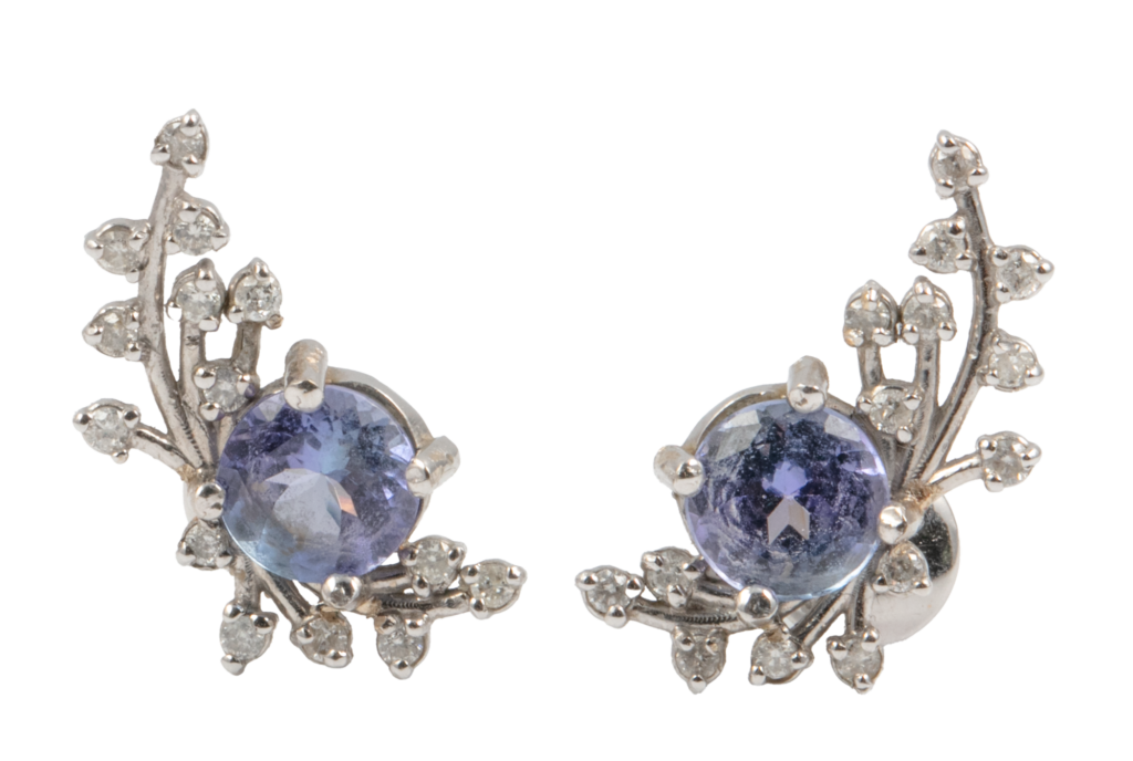 Brinco Ouro Branco 18k Ear Cuff Tanzanita com 24 pontos de Diamantes