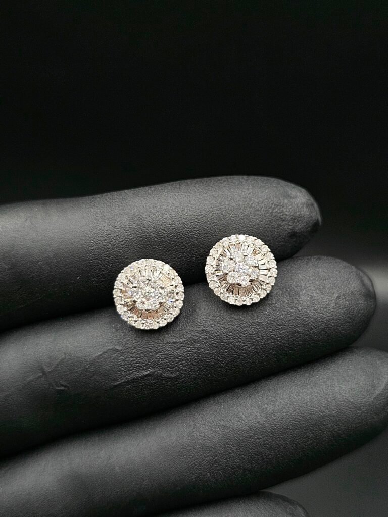 Brinco Ouro Branco 18k Pizza com 90 pontos de Diamantes