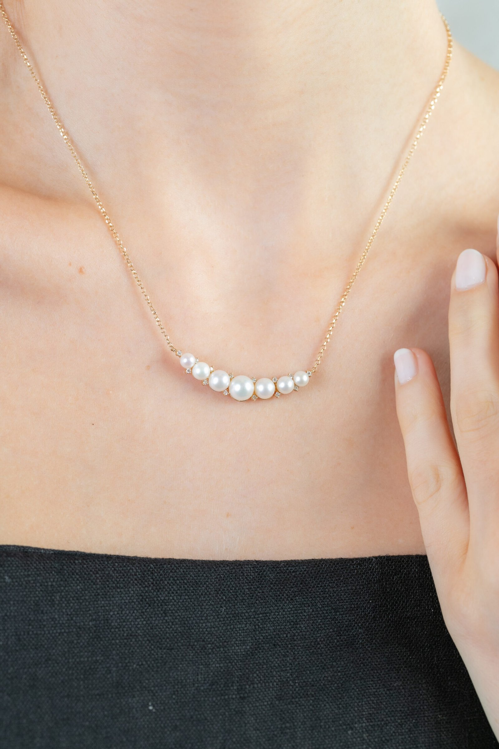 Colar Ouro 18k Pérolas Naturais de Água Doce com 14 pontos de Diamantes - 45cm