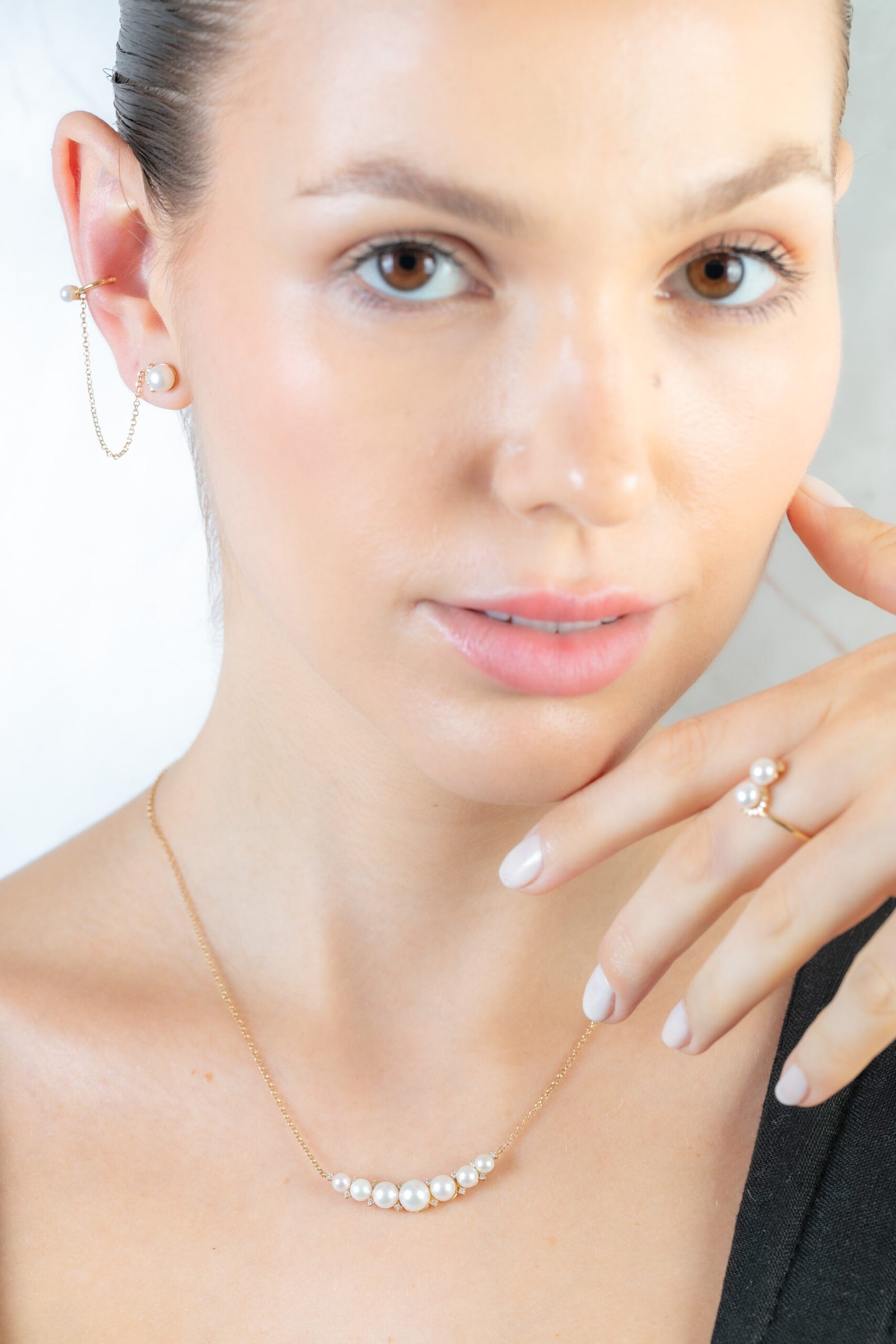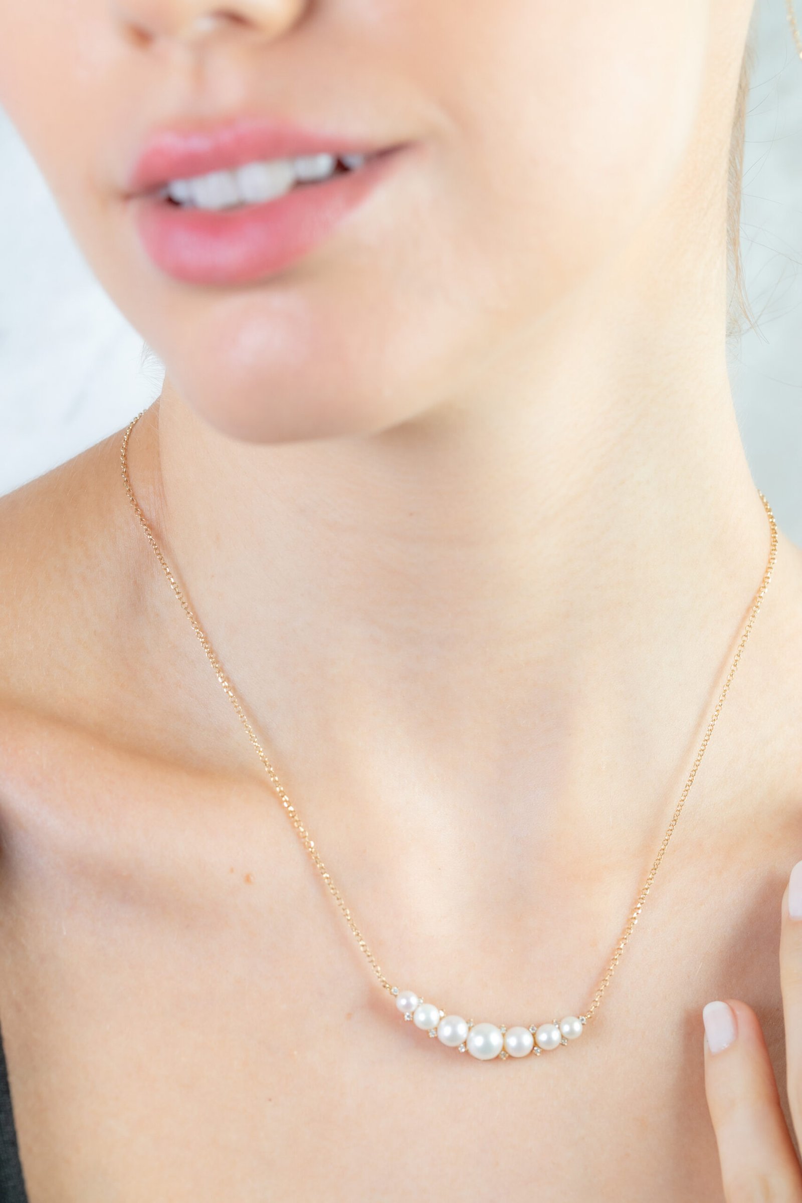 Colar Ouro 18k Pérolas com 14 pontos de Diamantes – 45cm