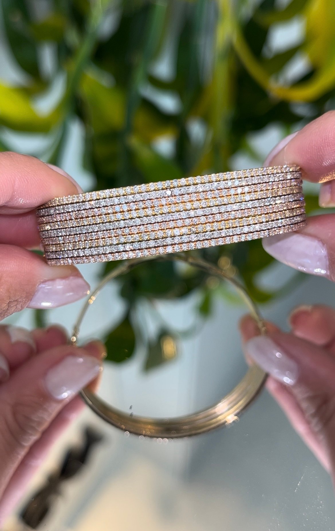 Pulseira Ouro Branco 18k Riviera faca com Esmeraldas e 24 pontos de Diamantes – 18cm